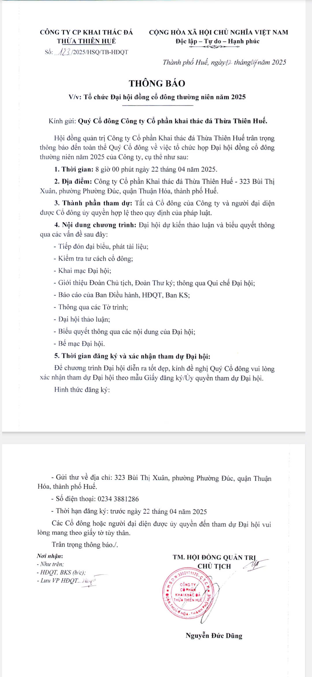 Thông báo tổ chức Đại hội đồng cổ đông thường niên 2025